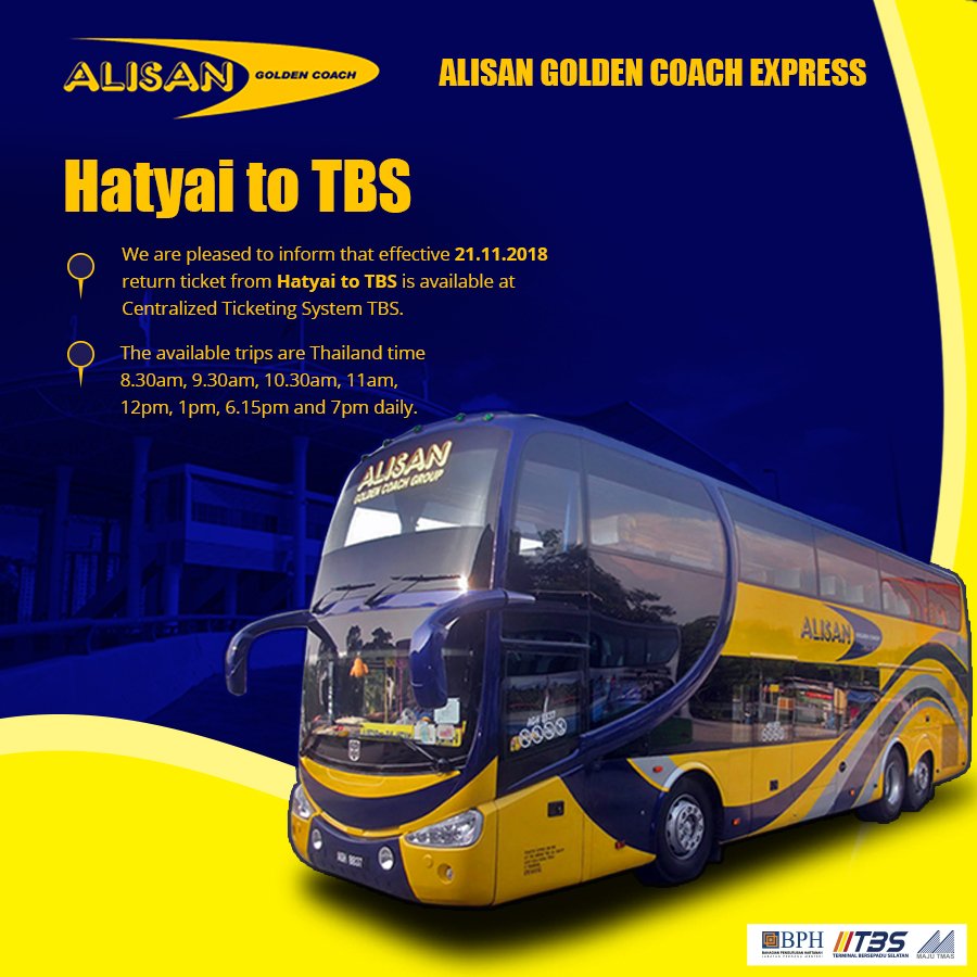 טוויטר Terminal Bersepadu Selatan Tbs בטוויטר New Route Hatyai Tbs With Alisan Golden Coach Effective 21 11 2018 Return Ticket From Hatyai To Tbs Is Available At Centralized Ticketing System Tbs The
